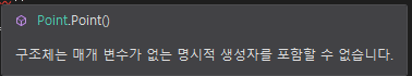 그렇기에 Point의 필드 값들은 0으로 남게 된다. 그러나 이것은 프로그래머들에게 오해의 소지를 줄 수 있기 때문에 (다른 언어에서는 struct도 기본 생성자를 만들고 호출하기도 하므로) C#에선 값 타입에 대해서는 매개변수 없는 기본 생성자를 허용하지 않는다. (근데 CLR에서는 허용함..)