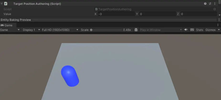 오브젝트를 움직이기 위해서 캡슐의 Transform을 변경해줘야 하는데, ECS의 Transform 변경 방식은 조금 복잡하다.