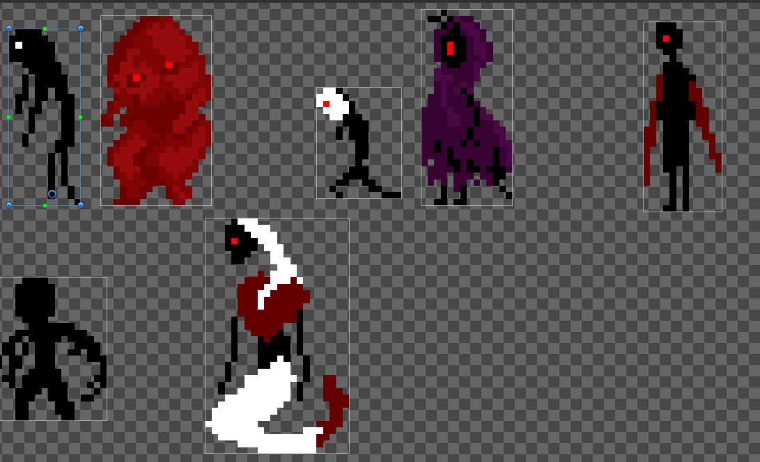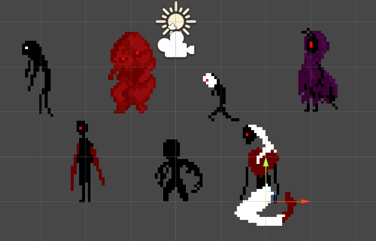 크기와 Pivot이 제 각각인 Sprite들을 적절한 위치에 지정해줬다. Sprite가 잘 나오고, Pivot이 잘 지정해졌는지 확인해보자.