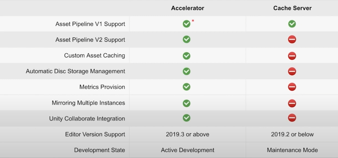 Custom Asset Caching : 만약 커스텀 에셋을 만들었다면 이에 대한 커스텀 에셋 임포터를 작성해줘야만 한다. 기존 캐시서버에서는 이런 커스텀 에셋을 지원하지 않았는데 Accelerator에서는 ScriptedImporter 파라미터에 AllowCaching=true만 지정해주면 됨.