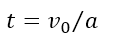 V0로 움직이는 물체가 있다고 가정하자. 브레이크의 가속도는 a이다. V0으로 움직이는 물체가 속도가 0이 되기 위해서 걸리는 시간 t는 다음과 같다.