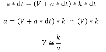 즉 최대 가속도가 250이고 항력계수가 0.25면 종단속도는 1000이다.