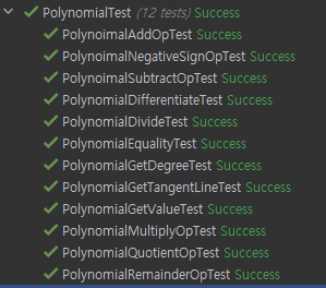 우선 다항식을 표현할 방법이 필요하여 Polynomial 클래스를 만들었다. Polynomial 클래스는
