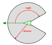 인접의 기준은 보통 단순하게 원 영역으로 정한다. 참고로 boids의 고안자인 Reynolds는 원 영역에서 진행방향 쪽으로 일정 각도를 잘라낸 영역을 이웃 영역으로 제안했다.