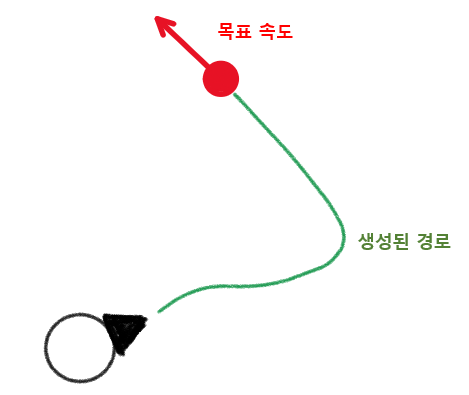 - 예를 들어 아래 그림과 같이 부 목표에 속도가 존재한다면 속도를 만족시킬 수 있는 경로를 제공한다.
