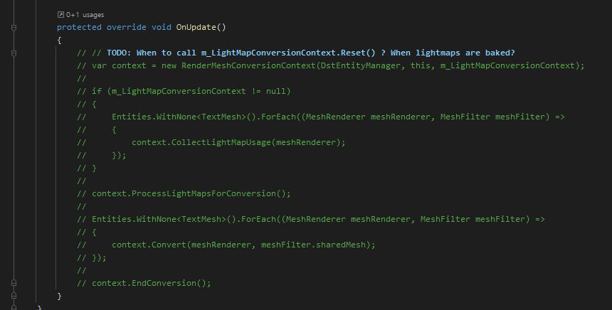 가령 RenderMeshConversion의 OnUpdate 부분을 주석처리 시켜보자...